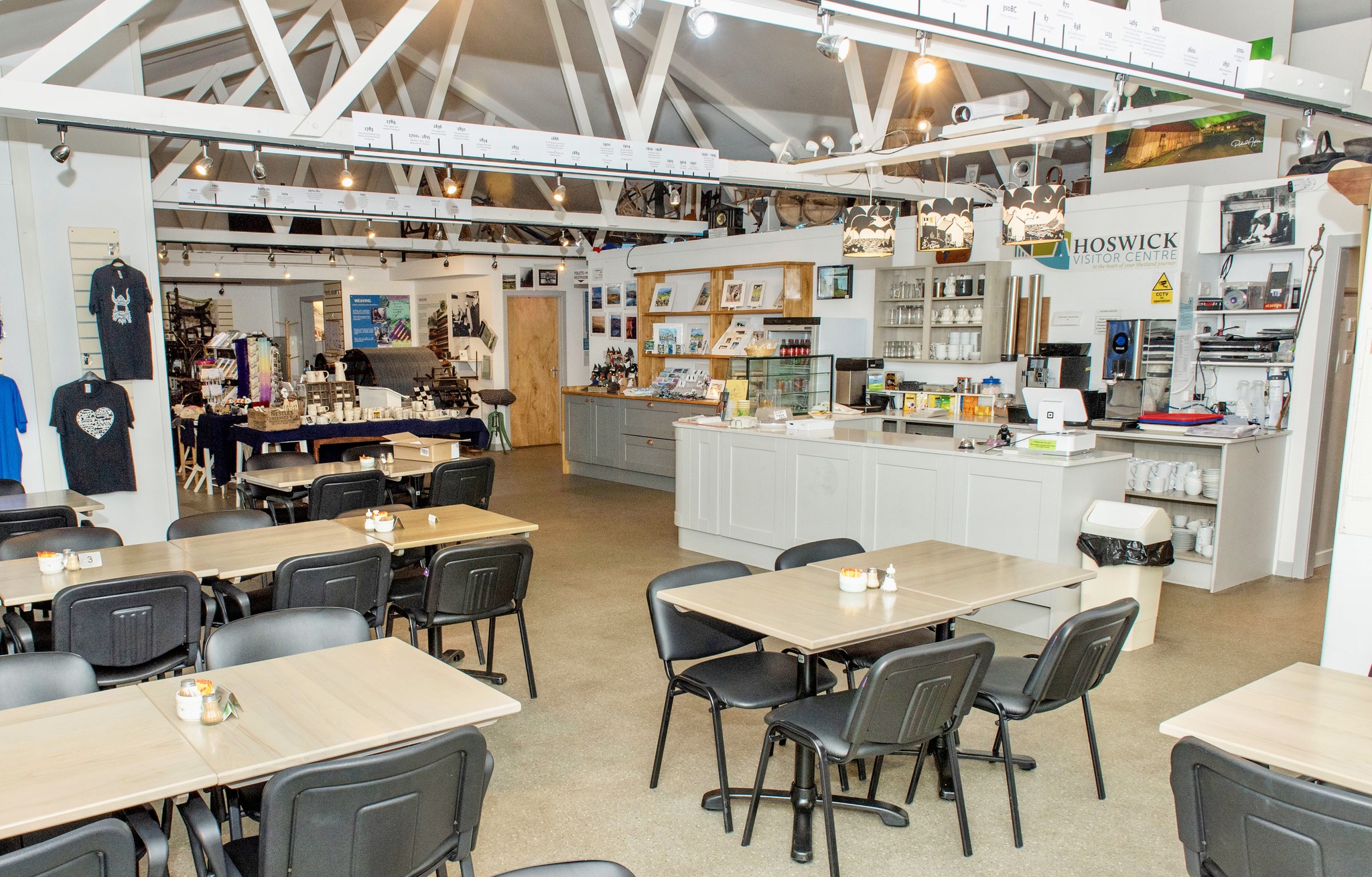 The popular Visitor Centre is housed in one of the former weaving sheds. Here, we’ll view displays about the history of fishing and weaving in this area and browse the gift shop full of locally made Shetland produce. Hoswick also has three other creative businesses; knitwear designers and manufacturers Shetland Woollen Company, Karlin Anderson handcrafted jewellery, and Nielanell Designer Knitwear.