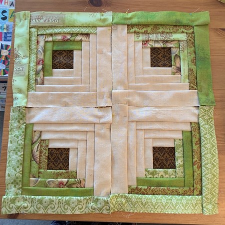Manx Log Cabin Patchwork, Quilt As You Go (Hand Stitching)