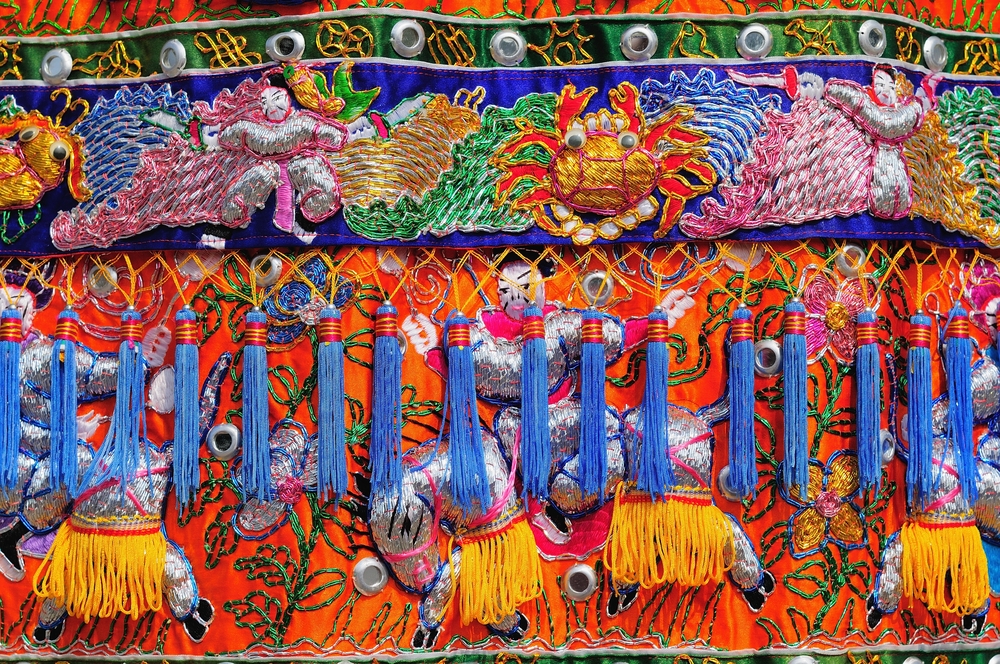 Our final visit today will be to the Kuang Tsai Embroidery Shop, where master artisan Mr. Lin preserves the intricate art of traditional Taiwanese embroidery. The shop specialises in hand-embroidered temple robes and banners, featuring motifs like dragons, clouds, and Chinese calligraphy. They are often embellished with shimmering gold and silver threads, reflecting the religious and cultural traditions of the region.
