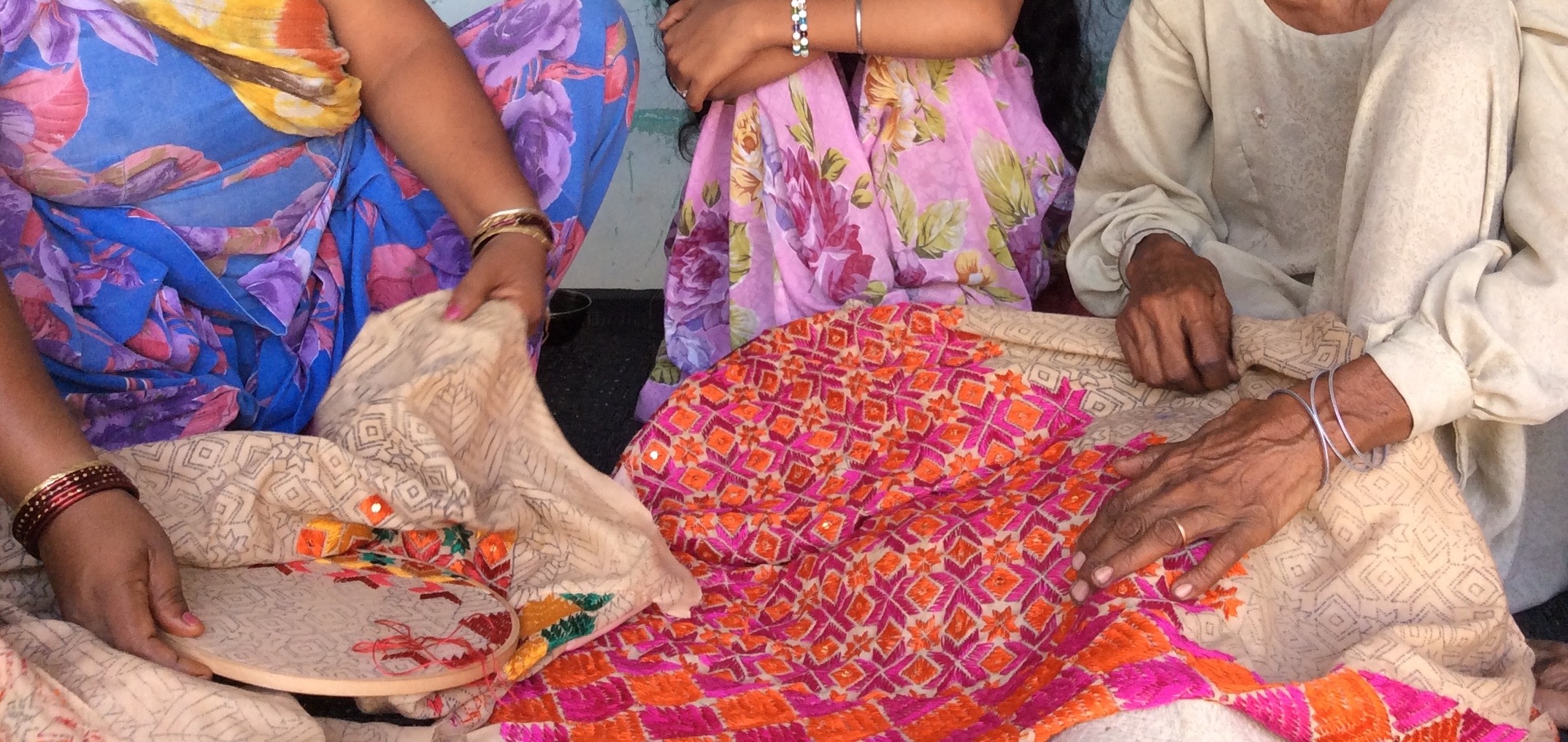 This morning, at a nearby village, we’ll meet a group of ladies for a demonstration and workshop on Phulkari embroidery. This art form originated in the early part of the 19th century when the odhani (veil or long scarf-like shawl) was decorated with embroidered flowers. In modern times, this vibrant folk art is now not only embroidered on odhanis, but also on saris, bed covers and home furnishings. Phulkari, meaning flower work, is a vibrant embroidery technique using untwisted silk thread on coarse cotton fabric and characterized by dense, geometric, or floral motifs made with a darn stitch on the reverse side.