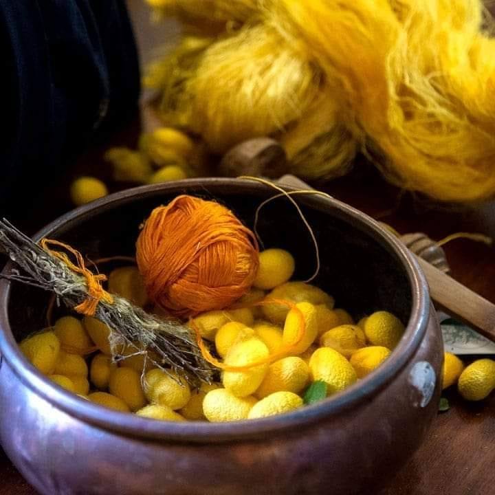 Very few women could weave silk in Orgosolo, but silkworm breeding was widespread. Every Orgosolo women would produce the silk she needed to make her own ‘su lionzu’, an elegant headdress which is part of the region’s traditional dress. The silk would then be taken to Maria’s family for weaving.