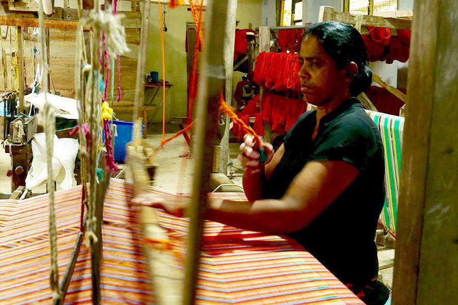 Sooriya Weaving Mill was established in 1976 by mother and son team Mr and Miss Sooriyaarachchi, with the intention of revitalising the Sri Lankan handloom industry. The mill is currently the largest handloom factory in the south of Sri Lanka, bringing together textile designers, artisanal communities, weavers and artists, all dedicated to ensuring the continuity of the craft. Our visit here will take us on a journey through the rich cultural heritage of Sri Lanka, as we learn about the distinctive fabrics from each region.